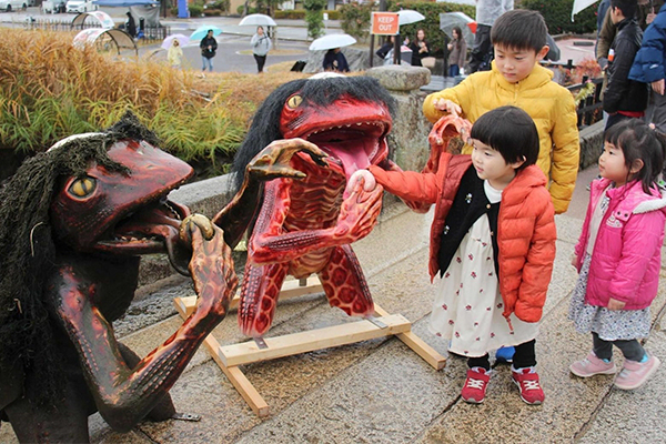 兵庫県福崎町様のご依頼で、妖怪ベンチ「座敷童子」を製作させていただきました。「もちむぎのやかた」の前に設置されてますよ~
