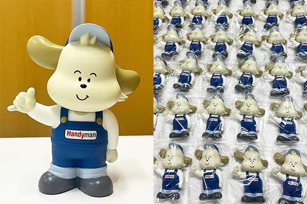 株式会社OKUTA様からのご依頼で、企業キャラクター「ハンディマン君」のフィギュアを500個製作させていただきました。